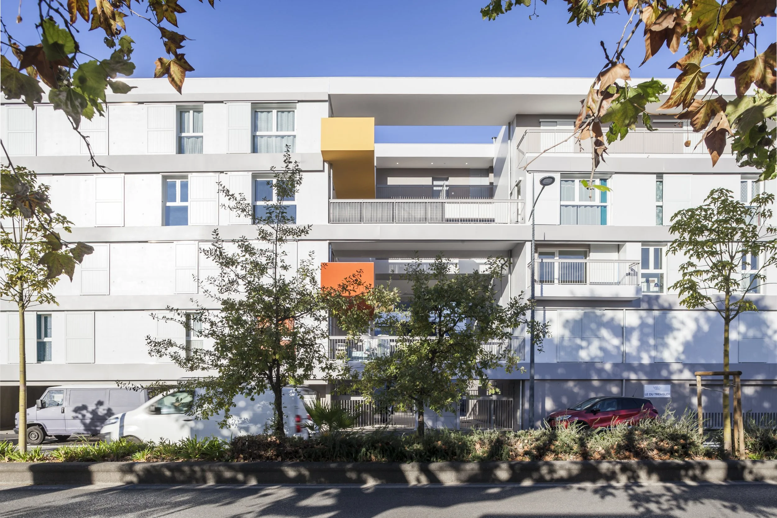 Les logements s’insèrent dans les volumes de 2, 3 ou 4 étages implantés le long de l’avenue et vers le coeur de la parcelle. Ce dispositif en gradins permet à chacun des 25 logements de prendre sa place dans l’environnement, tout en optimisant les expositions et la pénétration de l’ensoleillement.