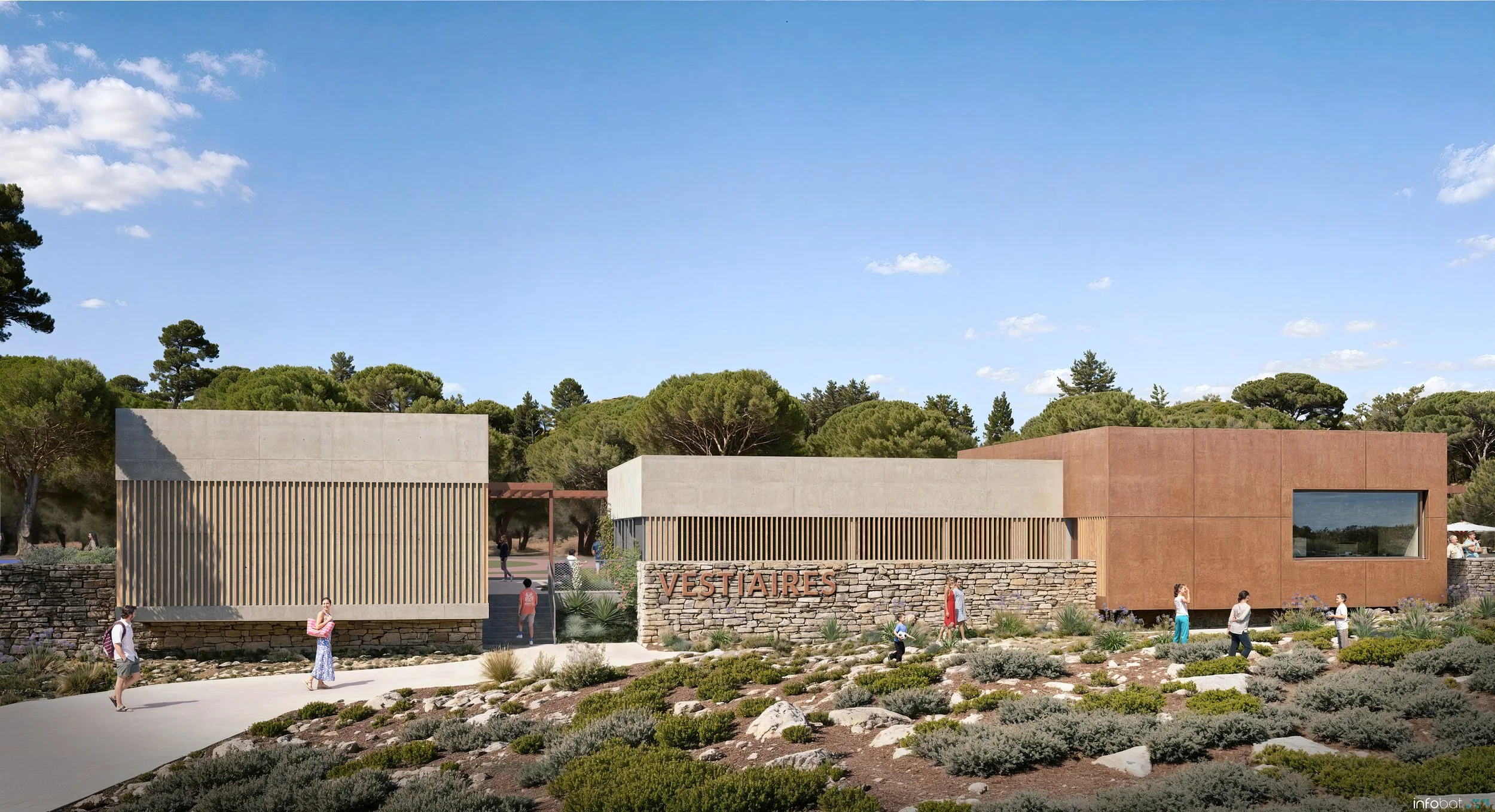 Le bâtiment prend place, au pied des équipements sportifs, facilement accessible grâce à une large esplanade, permettant le regroupement des joueurs et supporters.